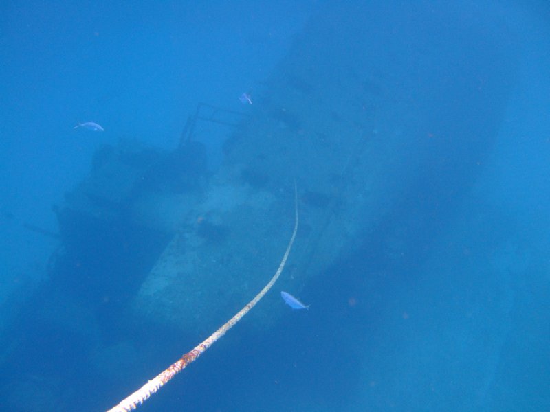 There was a group of Eagle Rays at the front of the wreck. It took us 10 minutes of HARD swimming against the current to get to the front of the wreck. It was worth it to see the school of rays.